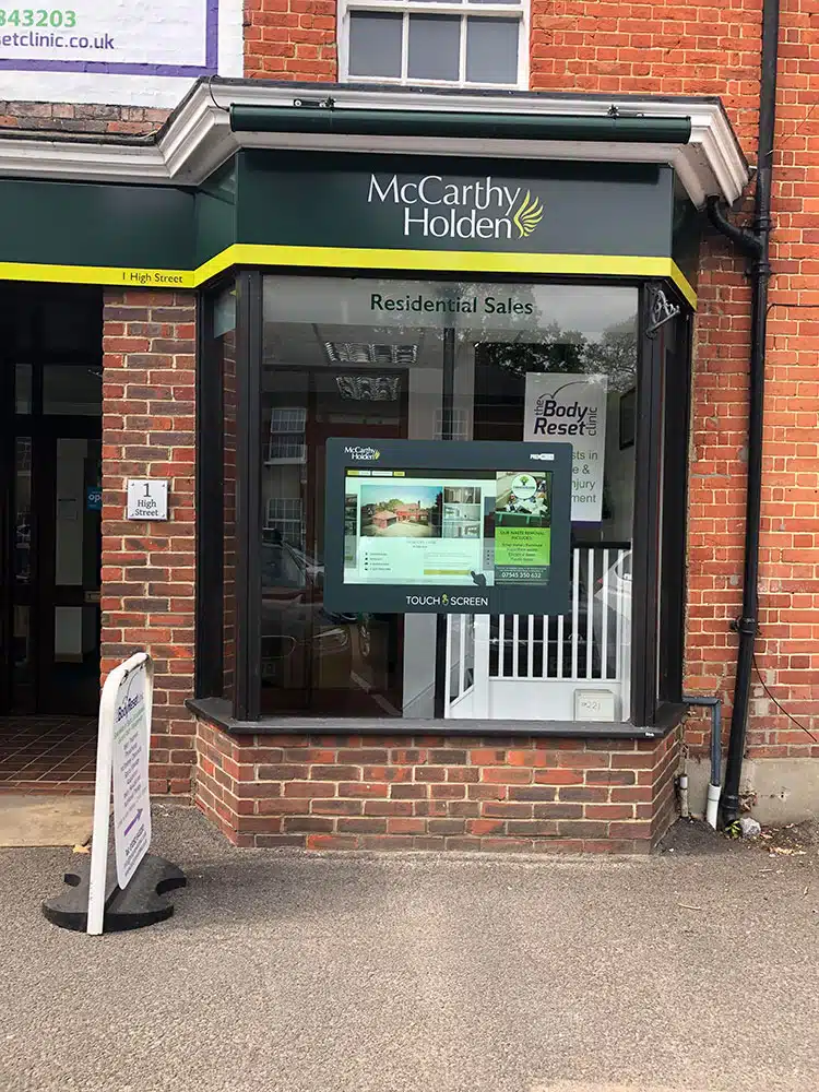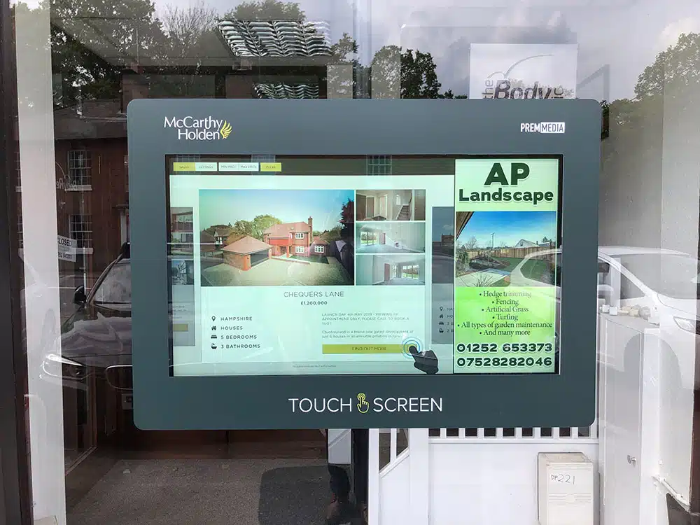 PremMedia recently implemented their cutting-edge ‘In Window System‘ at McCarthy Holden Estate Agent, situated in Fleet, Hampshire. This groundbreaking system is set to revolutionize the way real estate agencies interact with potential buyers and exhibit property listings. With the seamless integration of advanced technology into the agency’s window displays, PremMedia empowers McCarthy Holden to captivate passersby and create an enthralling visual experience.